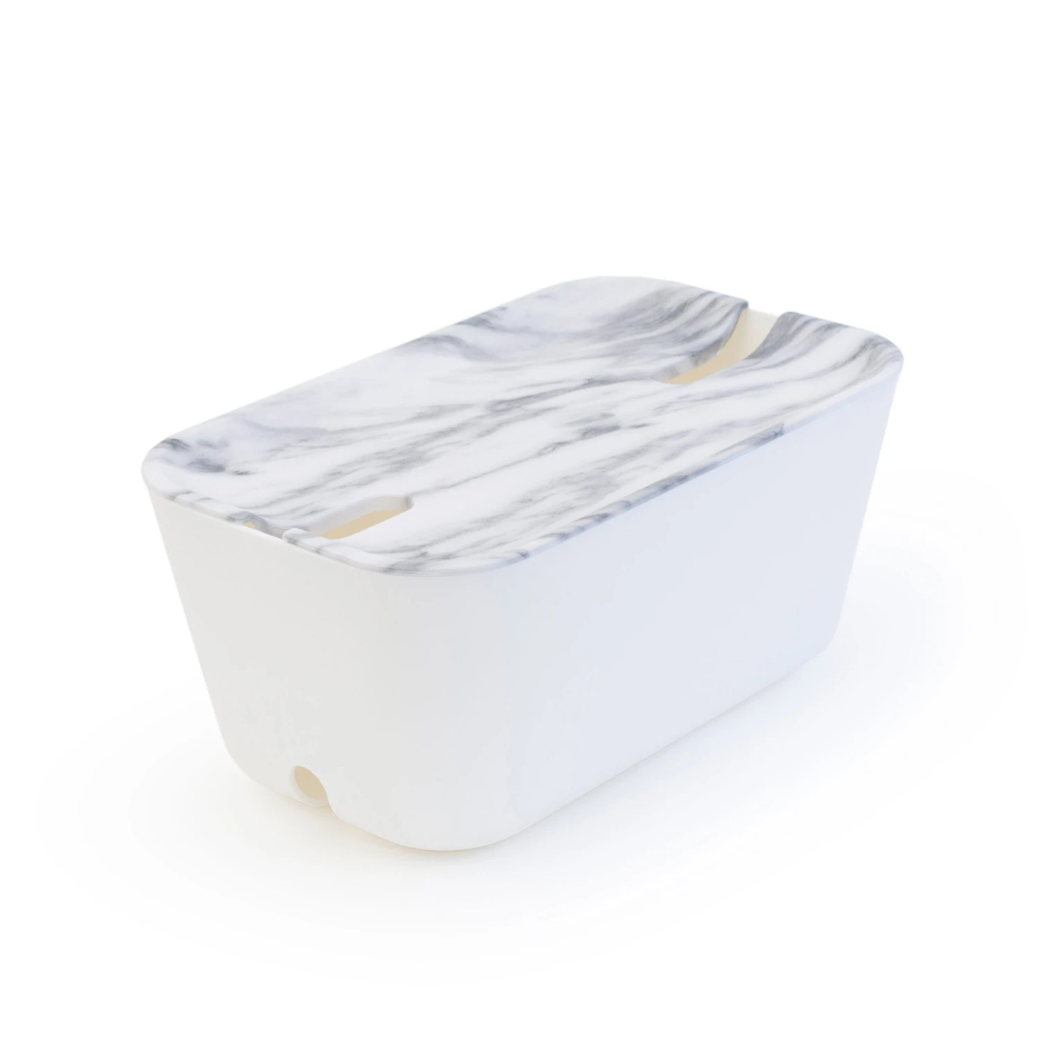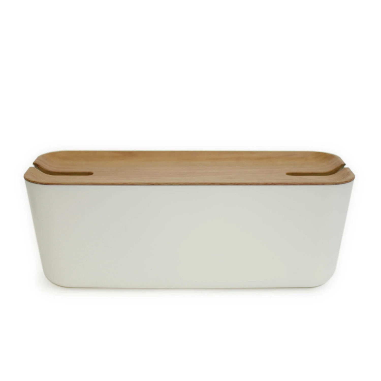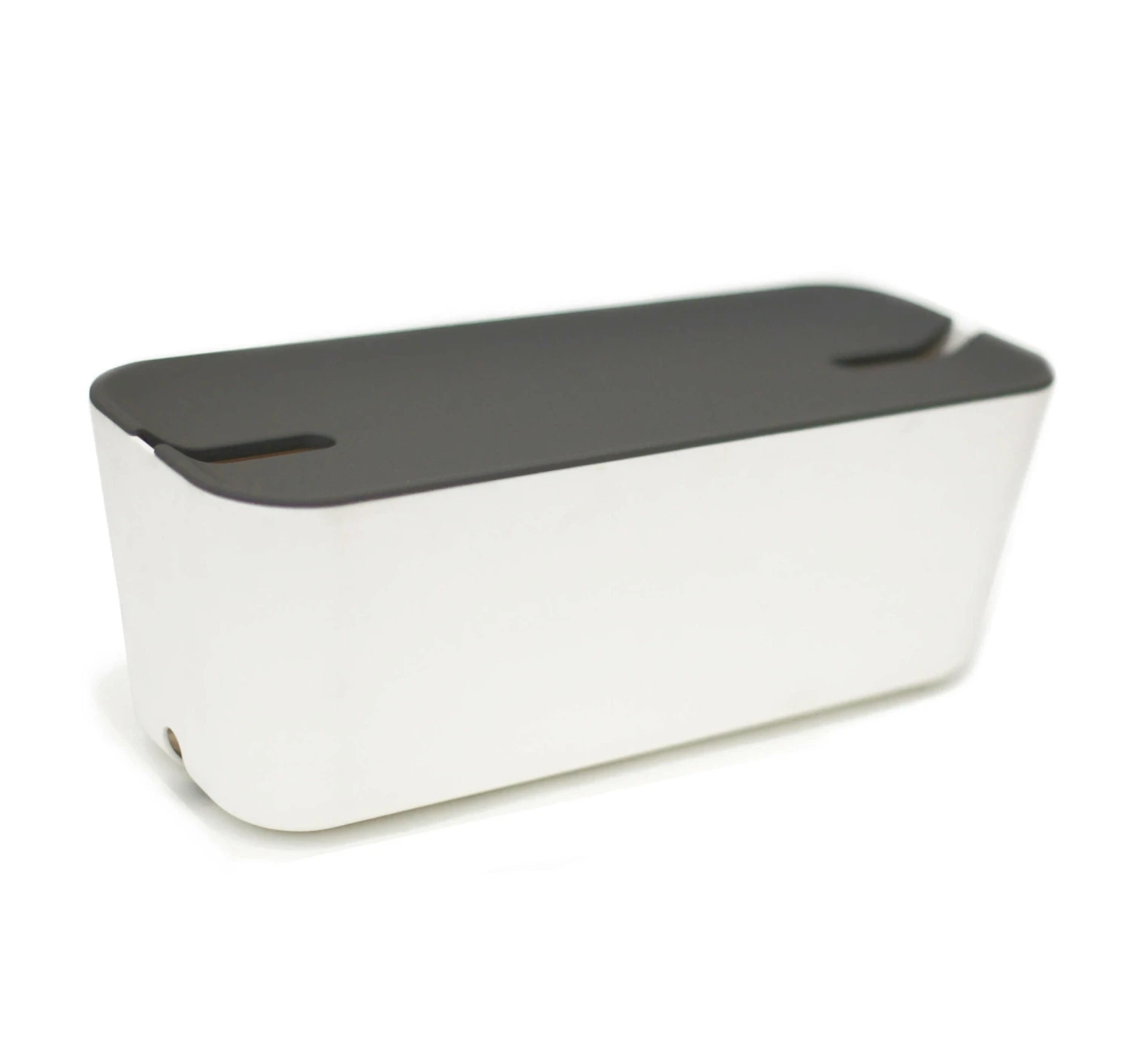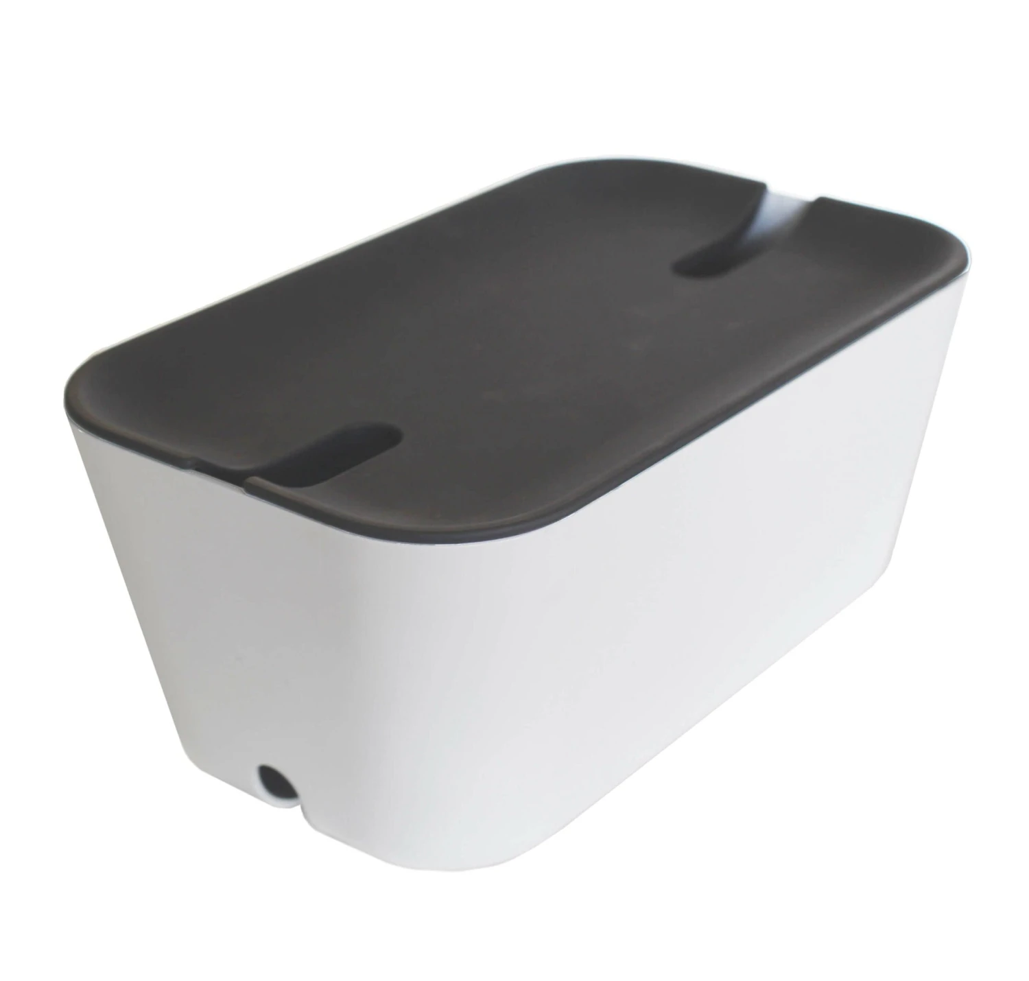 With Hideaway you can neatly avoid all cable tangles, both at home and in your office. The whole family can store their chargers in one place and not have to look for them. Moreover, it is an easy-to-clean solution for your cables at home and in the office. Hideaway is designed with carefully considered details like a lowered lid where all items lie safely. Hideaway has feet made of silicone for stability and to prevent scratches on floors, shelves or tables. The bottom of the drawer has ventilation holes and the material is flame retardant plastic. The lid is designed with a click function to keep cords, chargers etc. in place. With its simple and pure design, it is decorative and easy to reach.