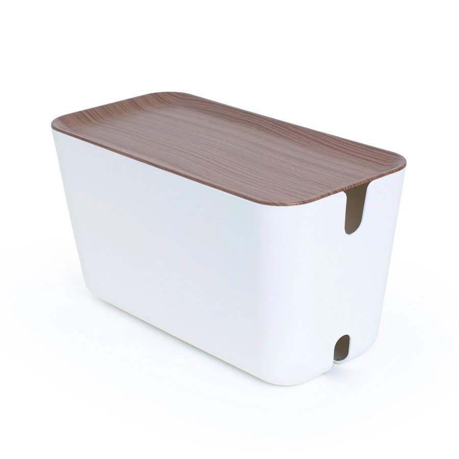 Hideaway Medium is a slightly larger model for floors, a side table or a shelf. The box fits grounded and non-grounded multi-way outlets (max 6-way). Note: This can vary depending on product and manufacturer. Fits one multi-outlet with a maximum length of 9.2 inches.