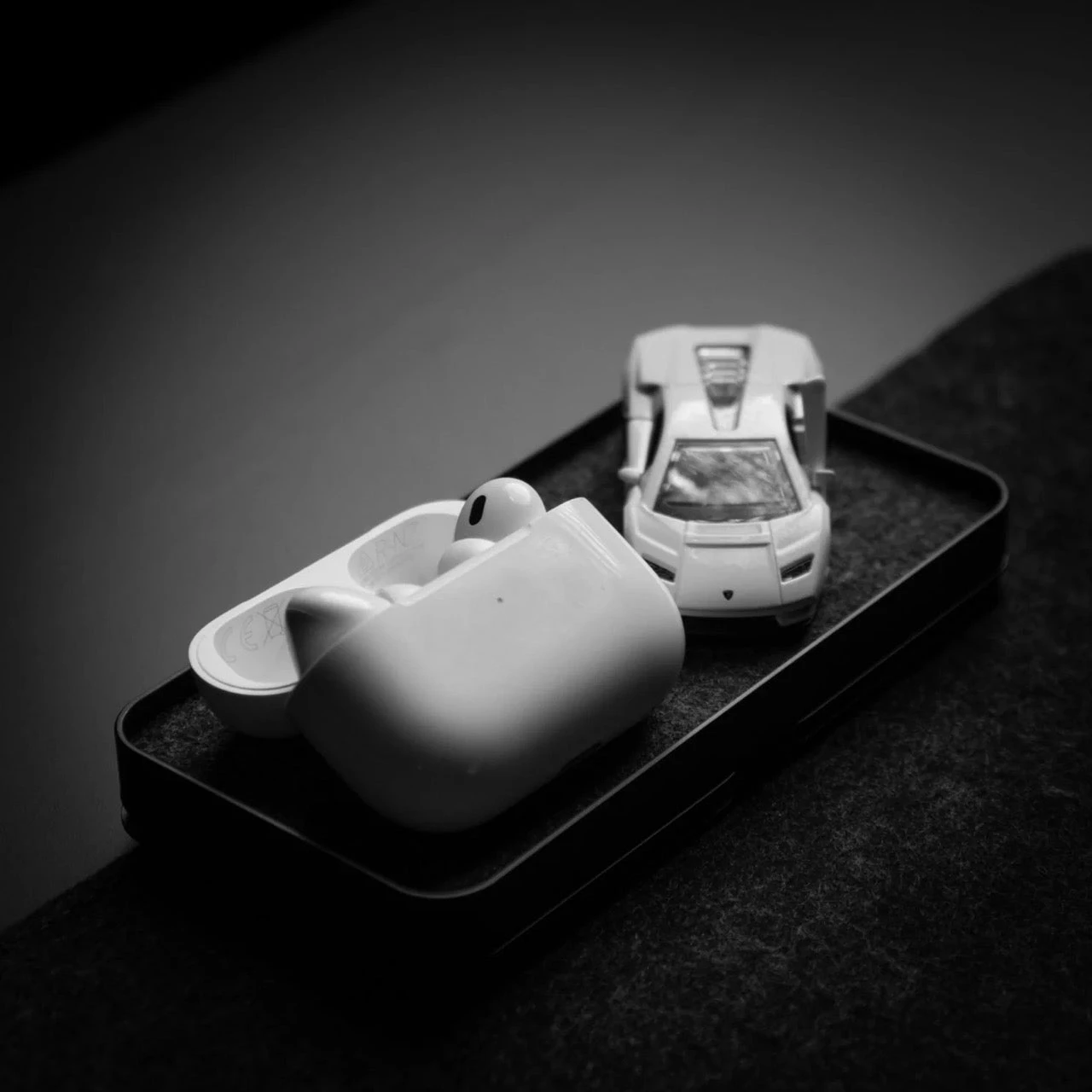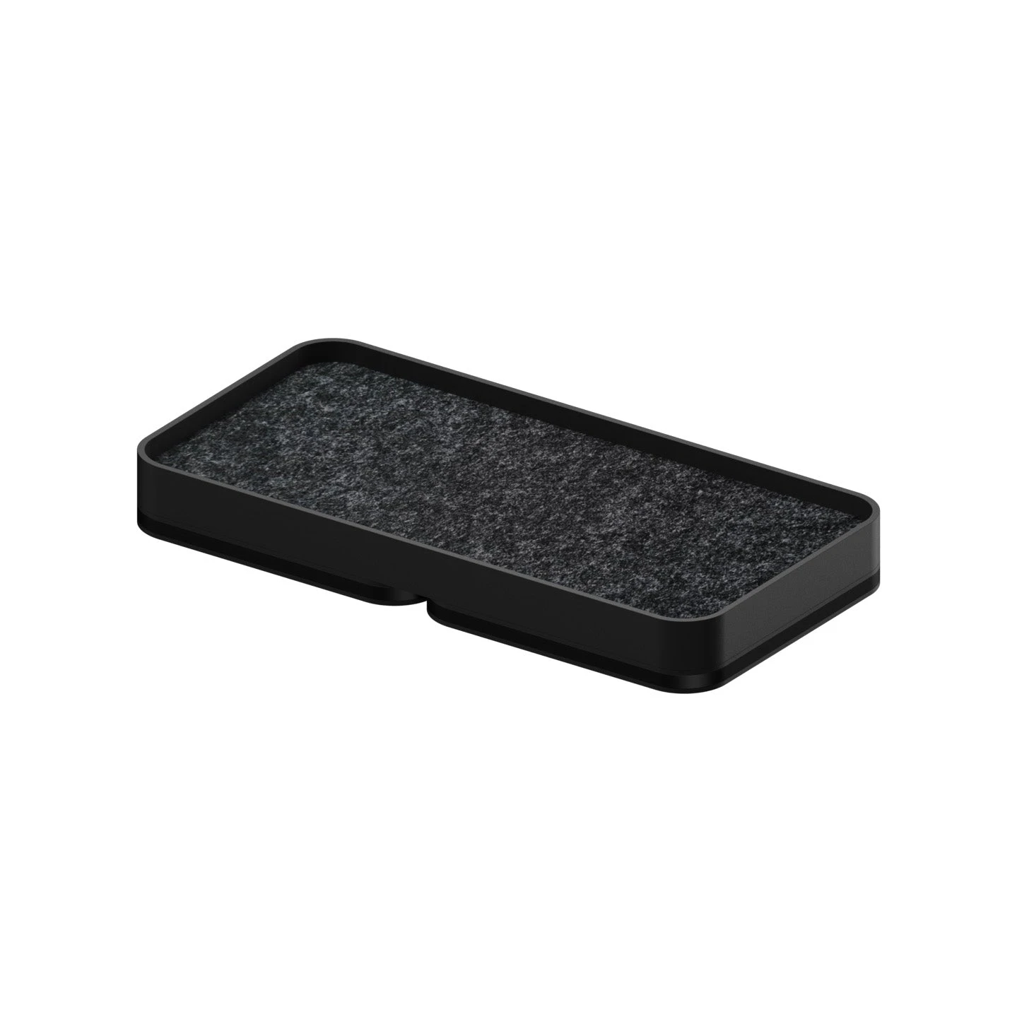 The interior of the vanity tray is lined with felt, offering a soft surface. From watches, AirPods, SD Cards, fidgets and Carpio Wrist Rest.