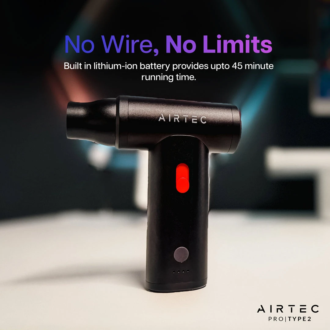 The AirTec Type 2 uses a built-in lithium-ion battery which provides up to 40 minutes of continuous power from a single charge. With no wires holding you back, AirTec is perfect for cleaning anywhere. Simply re-charge using the Type C USB cable when needed.