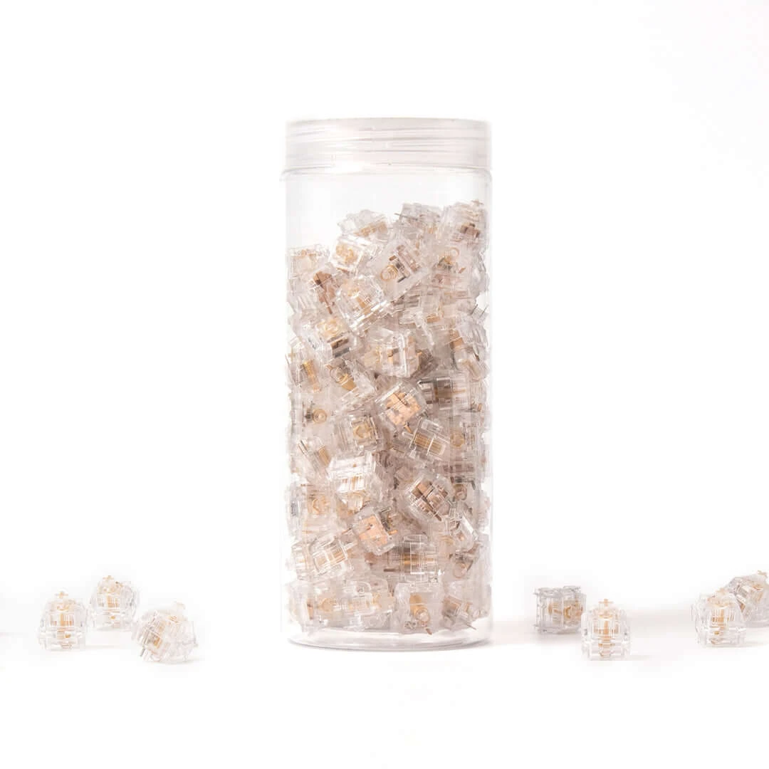 The Kailh Clione Limacina Switch is built with a nylon PA12 stem and PC housing material. It is Kailh’s first fully transparent switch with its jellyfish-like streamer; one of their more unique designs. It’s unique appearance and natural feel adds a charming quality to the switch. If you are a fan of the transparent switch look, the Kailh Clione Limacina Switch is a must-have.