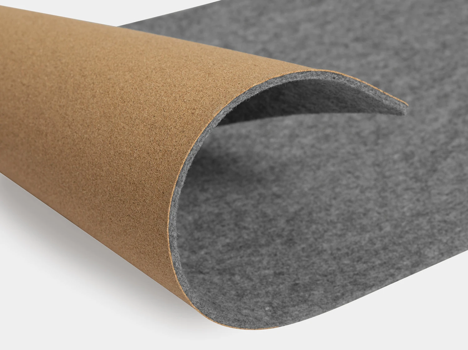 The Felt Cork Desk Mat elevates your workspace comfort thanks to its high-grade felt content. It provides padding for your mouse, keyboard, and other necessary accessories, and keeps them neatly organized within your arm’s reach, turning your desk into a well-arranged and functional space.