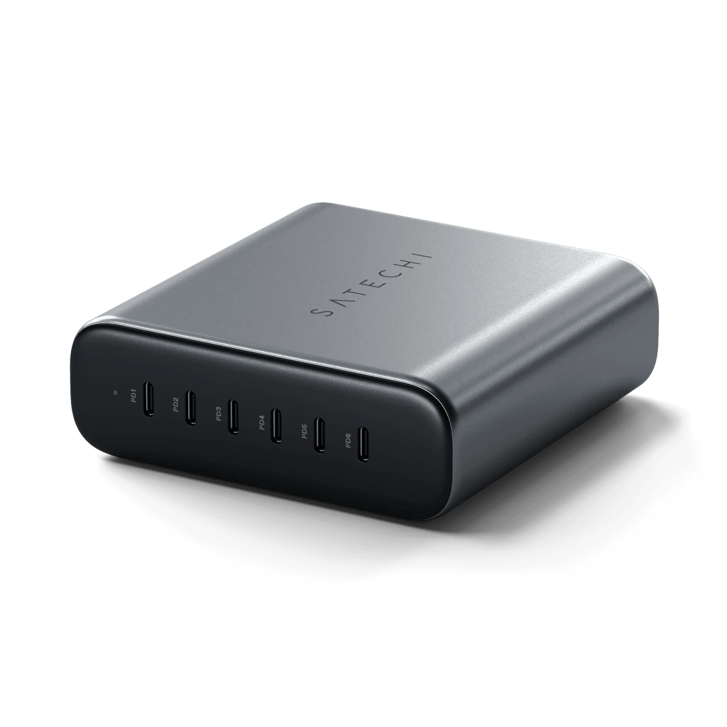 Level up with the Satechi 200W 6-Port USB-C PD GaN Charger. This elegant yet powerful charger allows you to charge up to 6 devices simultaneously driven by industry-leading GaN technology for a fast, reliable, and safe charge. By swapping out silicon for gallium nitride (GaN), we’ve reduced the size of our chargers without compromising power. Equipped with 6 USB-C PD ports to support multiple power configurations up to 200W, this charger is the perfect solution to power up your power-hungry devices.