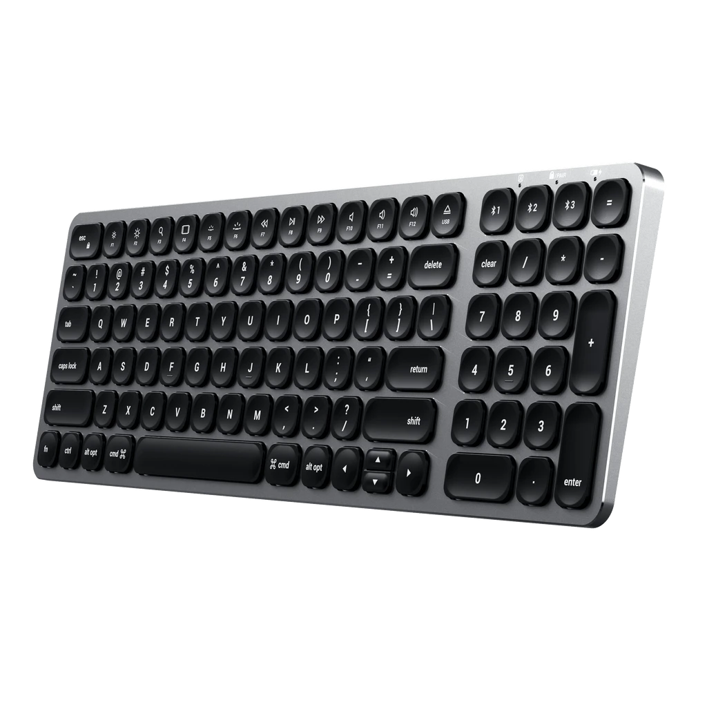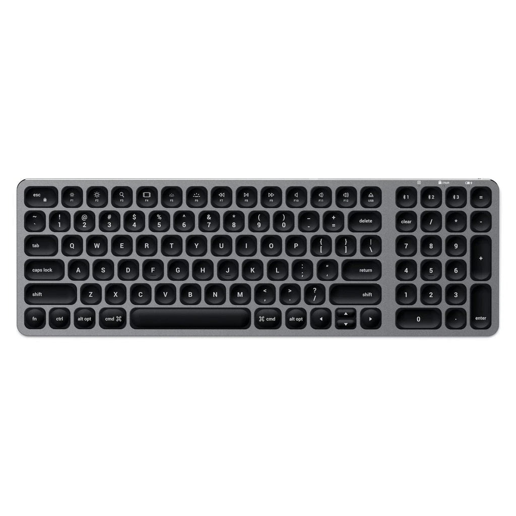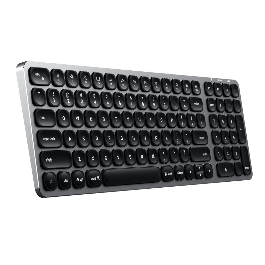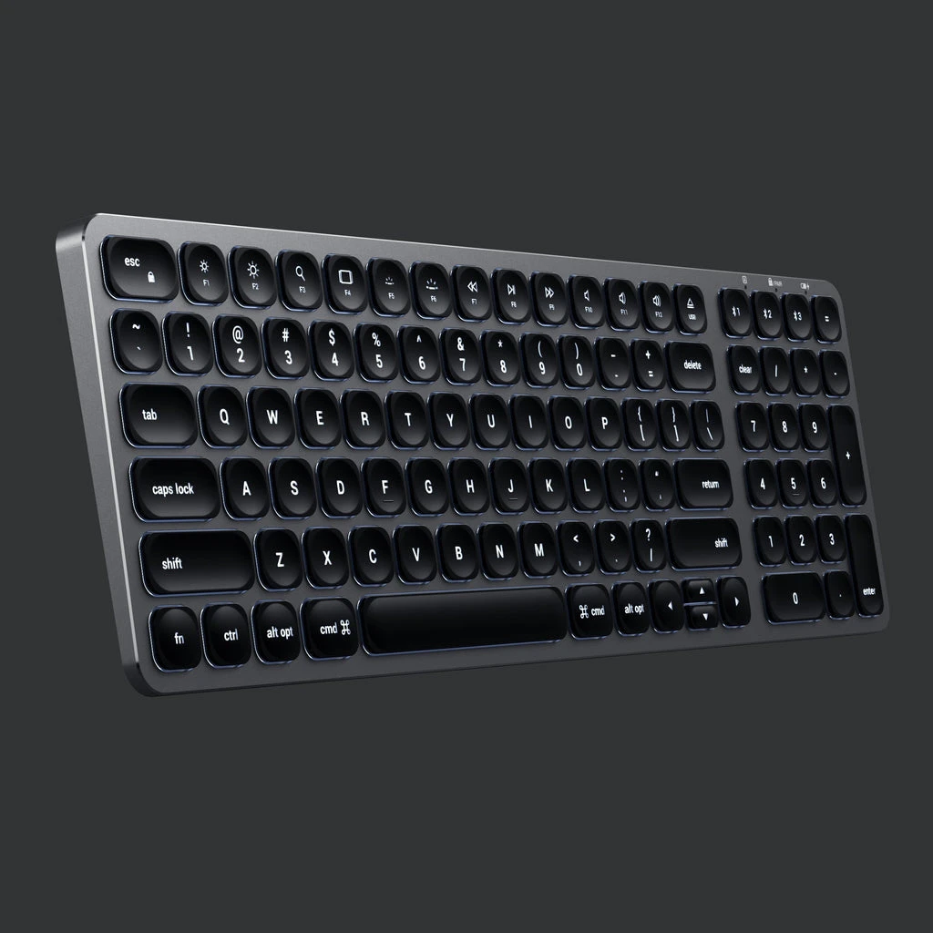 Work with ease using our Satechi Compact Backlit Bluetooth Keyboard, featuring a full keyboard layout, convenient backlit design, and a rechargeable USB-C port. Equipped with MacOS shortcuts and multi-device Bluetooth capabilities, the Compact Backlit Bluetooth Keyboard quickly becomes a natural extension of your desktop. Finally, a keyboard that works with you.