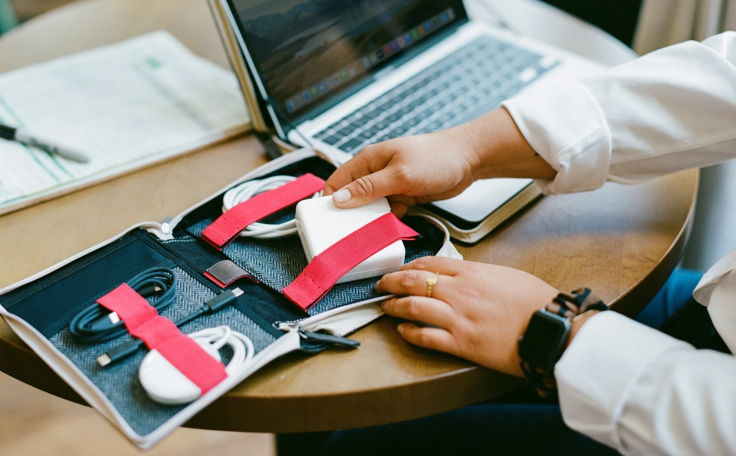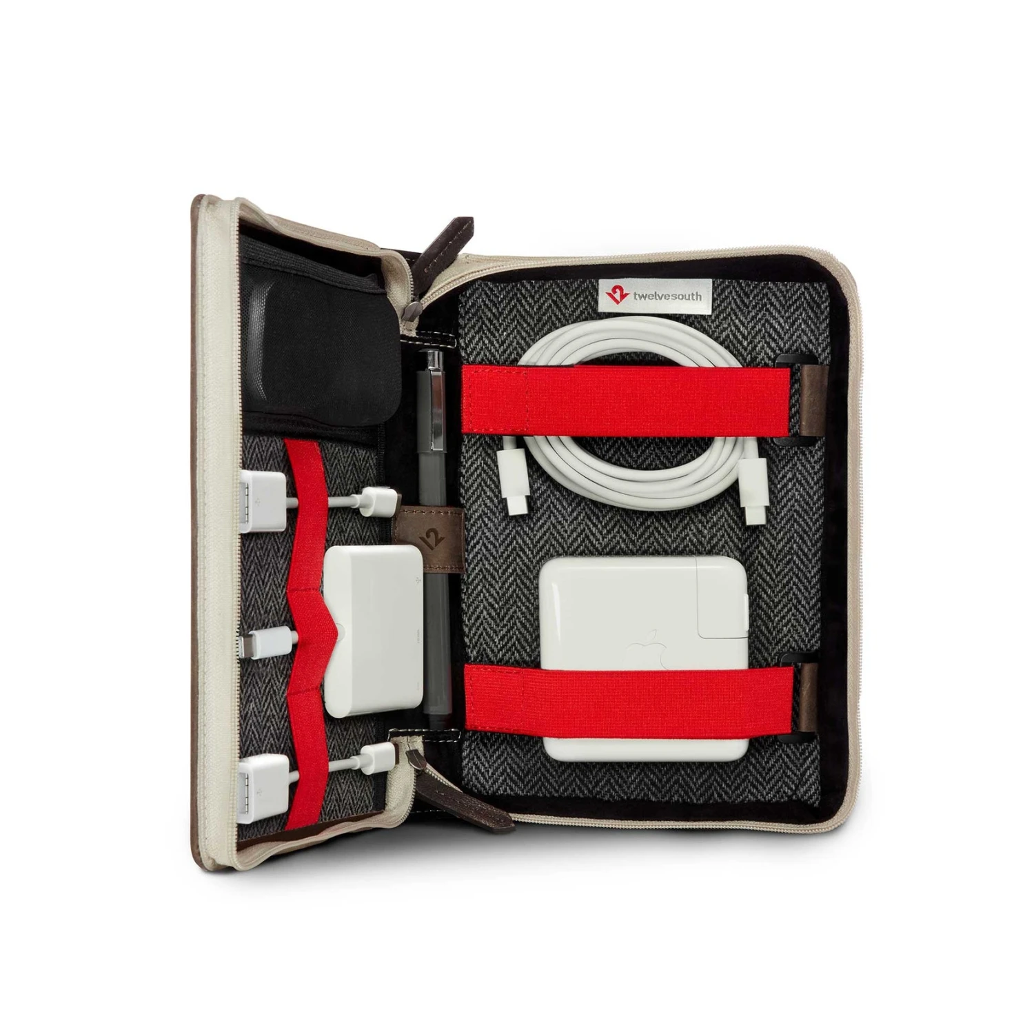 CaddySack is a handsome leather case designed to carry your MacBook must-haves. If you own the latest MacBook Pro, you know having zero USB ports means carrying several adapters. How do you carry them? CaddySack is the answer. CaddySack neatly holds your MacBook Power Adapter, various dongles, a pen and AirPods. Grab your MacBook and CaddySack when you head out the door and you’ll have all of the accessories needed for the day or an extended business trip. Since CaddySack looks like a book, you can store it on a shelf so your gear is always ready for your next trip or presentation.